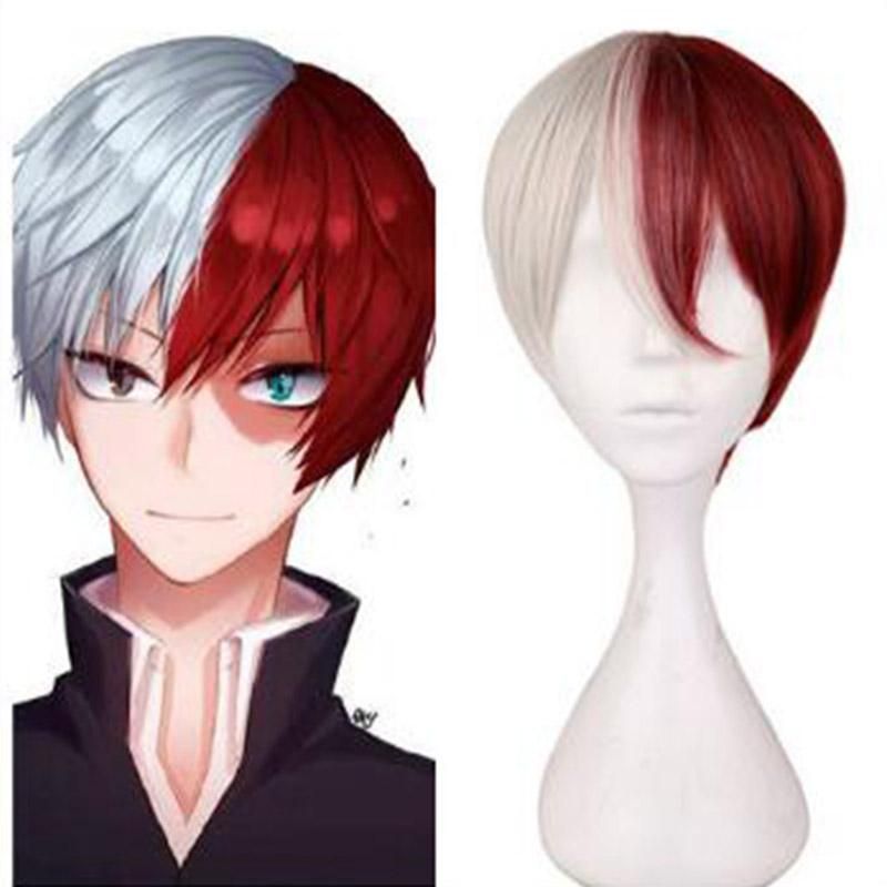 My Hero Academia Todoroki Shoto Style Hair Wigs Half Red Half Grey Synthetic Bob High Tempreture Fiber Cosplay Wig